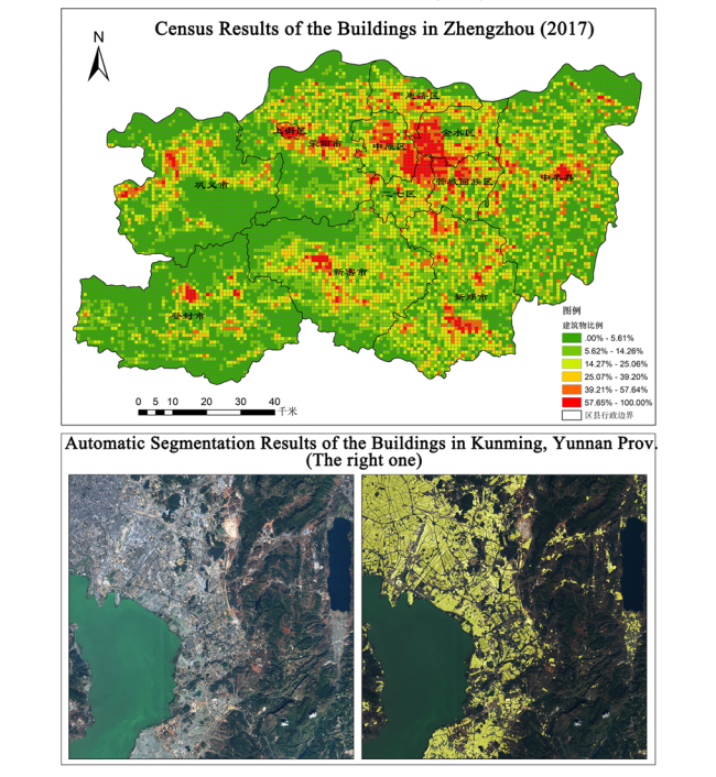 Based on big data and state-of-the-art deep learning methods, we can automatically extract and analyze several substances in remote sensing image data from GF-1, ZY-3 and other satellites, including buildings, roads, plants, water, etc. Our method has been practically applied to land monitoring in our country. Now the system, whose single-day throughput reaches 5 TB, processes more than 1000 images per day covering about 1,500,000 square kilometers.