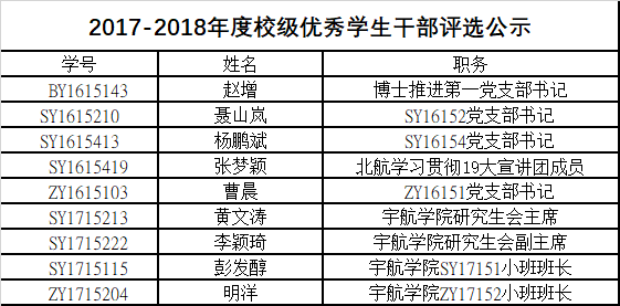 b体育必一运动2017-2018年度校级三好学生、优秀学生干部评选工作已经结束,现对评选结果进行公示: