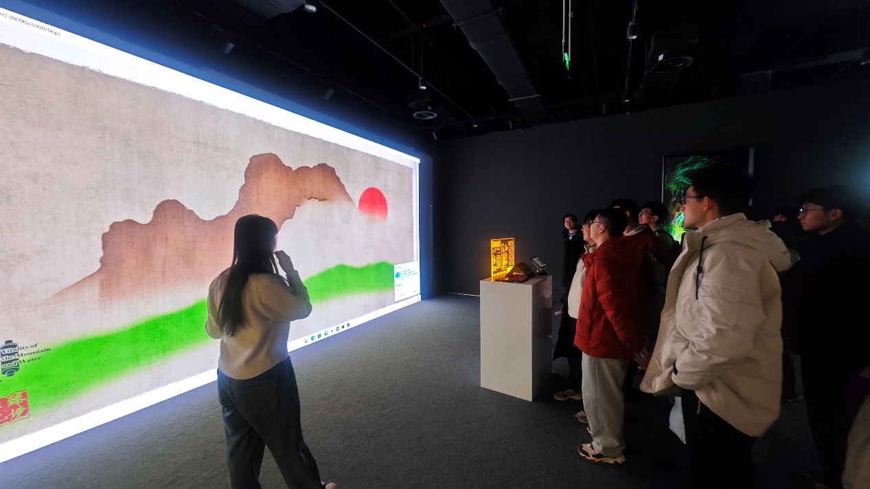 在聆听导览与讲解的过程中,党员们认真思考艺术作品背后的文化寓意与创作逻辑,积极交流对传统艺术与数字艺术表达方式的理解差异与融合契机。有同学分享道,通过这些作品,体悟到艺术既是文化根基,也是科技创新的精神源泉,在科研实验之外,同样需要审美素养来培育创造力与想象力;还有同学感悟道,数字艺术中的交互装置让自己体会到,科技不仅是工具,更是与人类感知互动的桥梁。