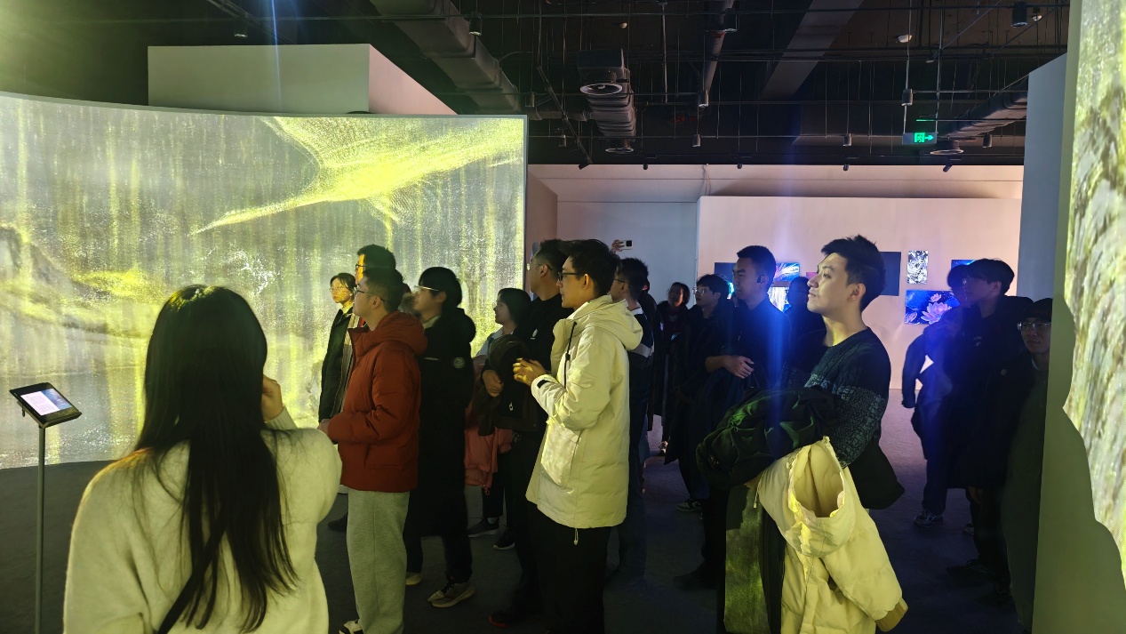在“光影苍穹:数字艺术展”中,同学们驻足于动态影像、交互装置、数据可视化等数字媒介作品前,深入体会艺术与科技的共生语境。该展览汇集了国内二十余位数字艺术家的代表性作品,以人工智能、虚拟现实和传感技术为表达载体,探讨人与自然、现实与虚拟、审美与技术的多维关联。展陈作品不仅具有强烈的视觉冲击力,更引发党员同学们对数智时代艺术语言表现力与科学方法深度融合的深刻思考。