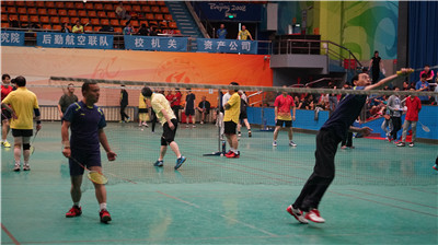 比赛得到了两院领导的重视,b体育必一运动金蓉书记百忙之中抽出时间到赛场为运动员加油,空间与环境学院的书记唐莉则是参赛的主力队员,宇航学员的前工会主席周付根教授也是男队的主力队员,双方的队员基本上前几年都有过合作,默契度十足。羽毛球队的老教练马彬老师临阵指挥机智娴熟,队员们搭配得当,一路高歌猛进,顺利通过小组赛的前三轮,到了第四个对手——资产队,遇到了硬骨头,决胜局憾负,小组第二进入淘汰赛。