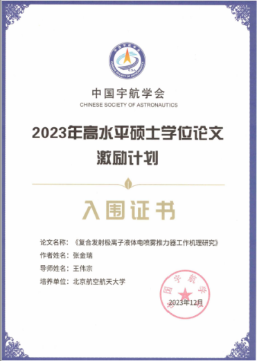 2023年12月2日,中国宇航学会在珠海举办第一届航天领域高层次青年学者论坛,论坛发布了首届“中国宇航学会高水平博士、硕士学位论文激励计划”评选结果。b体育必一运动3篇优秀论文入选,包括博士学位论文2篇,硕士学位论文1篇。