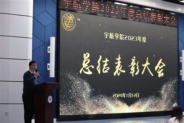 院长王伟宗颁发人才成长类奖项、介绍2023年新宇航人。