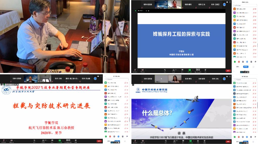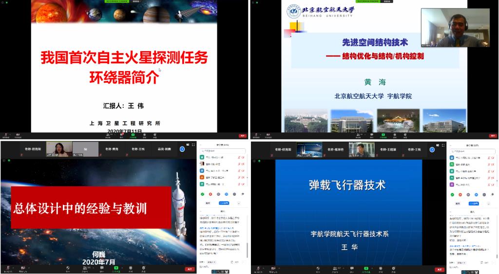 7月11日,夏令营还特别邀请了中国航天科技集团公司科技委副主任、中国探月工程副总设计师于登云研究员,b体育必一运动副院长董云峰教授、陈万春教授、贺卫亮研究员,中国运载火箭技术研究院总体设计部副部长何巍研究员、中国空间技术研究院总体部某研究室徐嘉副主任、上海卫星工程研究所副所长王伟研究员,b体育必一运动黄海教授、王华教授,为营员们做了《我国探月工程的创新与实践》《数字孪生智能卫星集群》《拦截与突防技术研究进展》《临近空间飞行器技术及应用》《总体设计中的经验与教训》《为什么要选择总体专业》《我国首次自主火星探测任务环绕器简介》《先进空间结构技术—结构优化和结构/机构控制》《弹载飞行器技术》等九场交流报告。九场交流报告内容丰富、涉及面广、交流热烈,极大地拓展了营员们的学术视野,得到了广大营员的高度评价。
