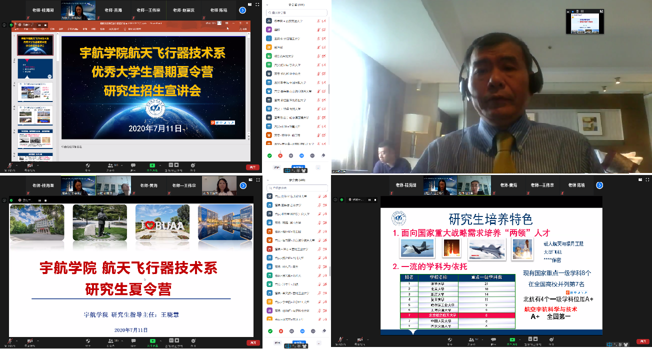 2020年7月11日-12日,b体育必一运动航天飞行器技术系举办2020年优秀大学生暑期夏令营活动。本届夏令营共收到来自全国108所高校的430余份申请,经过院系专家组的层层筛选,来自哈尔滨工业大学、西安交通大学、武汉大学、北京理工大学、西北工业大学、中山大学、四川大学、重庆大学、电子科技大学、湖南大学等二十余所国内知名高校共80名同学成功入营。