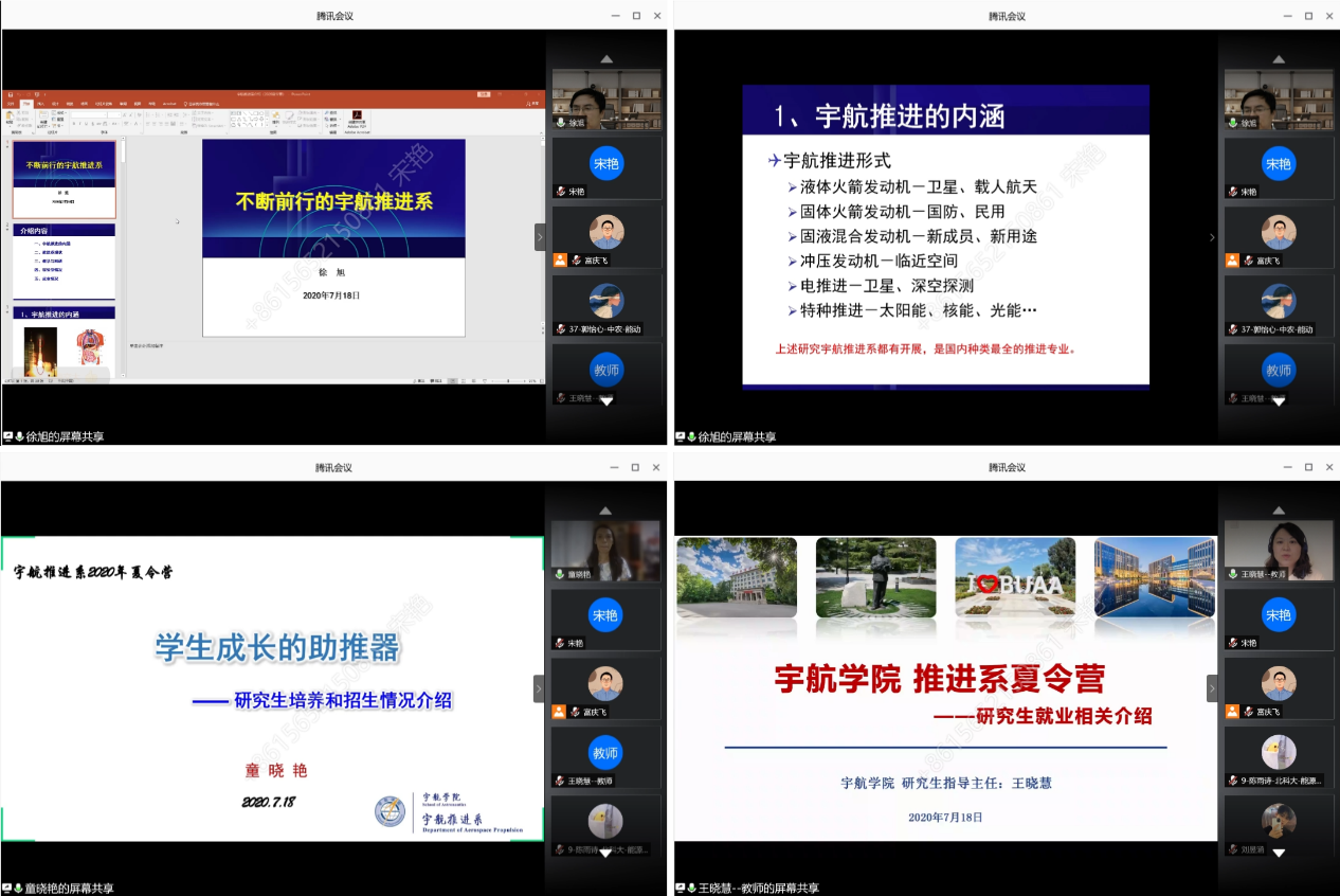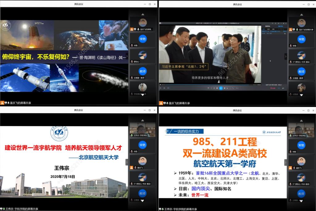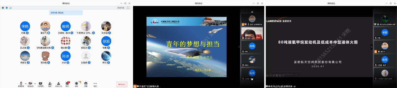 夏令营还邀请到了优秀校友——中国航天科技集团第六研究院第11所重型发动机总体室主任高玉闪,中国航天科工集团第31所组合发动机系统主任设计师韦宝喜,蓝天航天副总裁葛明和,为营员们做了《先进液体主动力技术》、《青年的梦想与担当—乘风破浪矢志空天》、《蓝箭航天的发动机研制项目》等报告,内容丰富且具前瞻性,线上交流讨论热烈,极大地拓展了营员们的视野。