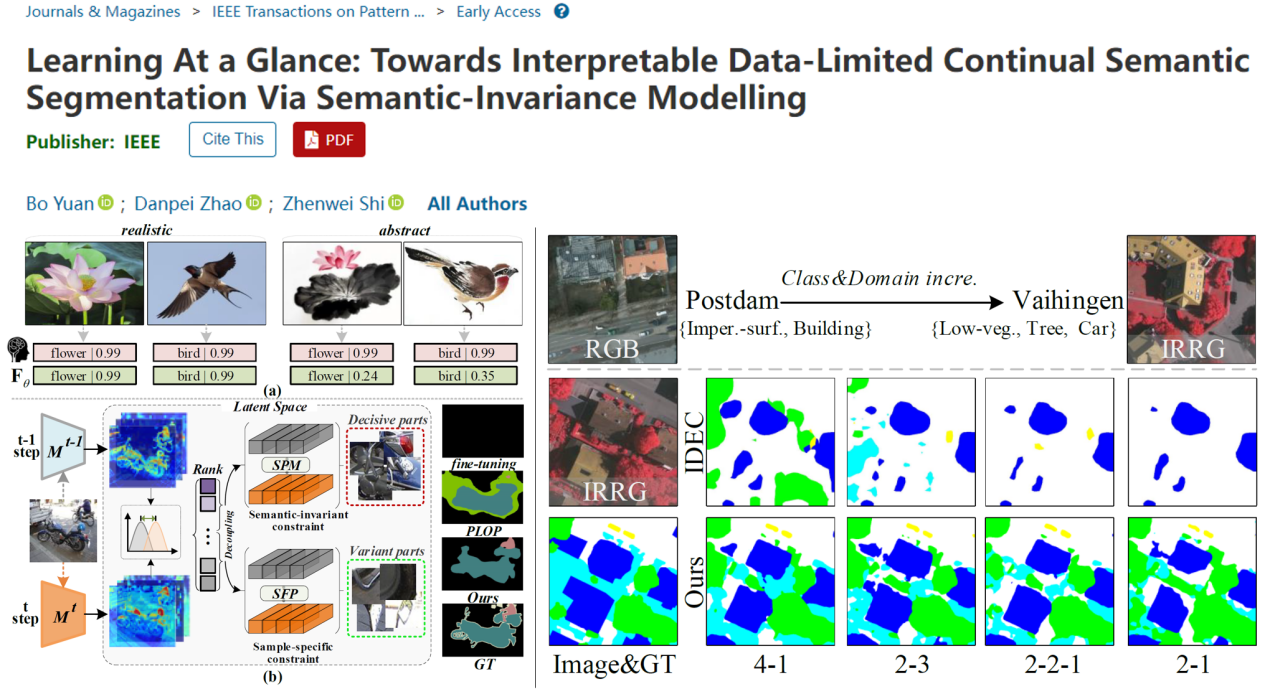 这三篇论文由我院赵丹培副教授和2022级博士研究生苑博等完成。论文均围绕基于持续学习的图像解译任务展开研究,为终身学习理论在图像分割、感知和认知领域的应用奠定了基础,也为更高层次的人工智能在遥感图像持续解译领域提供了重要的理论依据和引用价值。上述研究工作得到了国家自然科学基金(No.62271018)的资助。