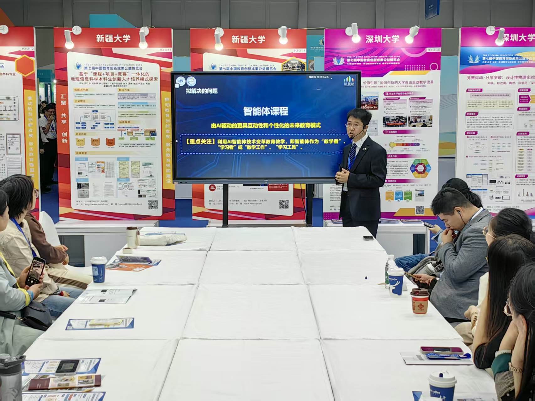 11月15日至17日,第七届中国教育创新成果公益博览会在珠海国际会展中心举行。本届教博会以“汇聚·共享·创新——推动教育创新发展,服务教育强国建设”为主题,聚焦科学教育提质增效、人工智能助力教育变革等八大领域,吸引了全国近2000家单位参展。b体育必一运动教学团队携拔尖创新人才培养AI课程构建与应用教学成果参展,内容涵盖数智赋能教学创新、AI赋能课程建设、拔尖创新人才培养范式等核心内容,成为本次博览会综合与理工类高校展区(H3-3展区)的亮点成果。