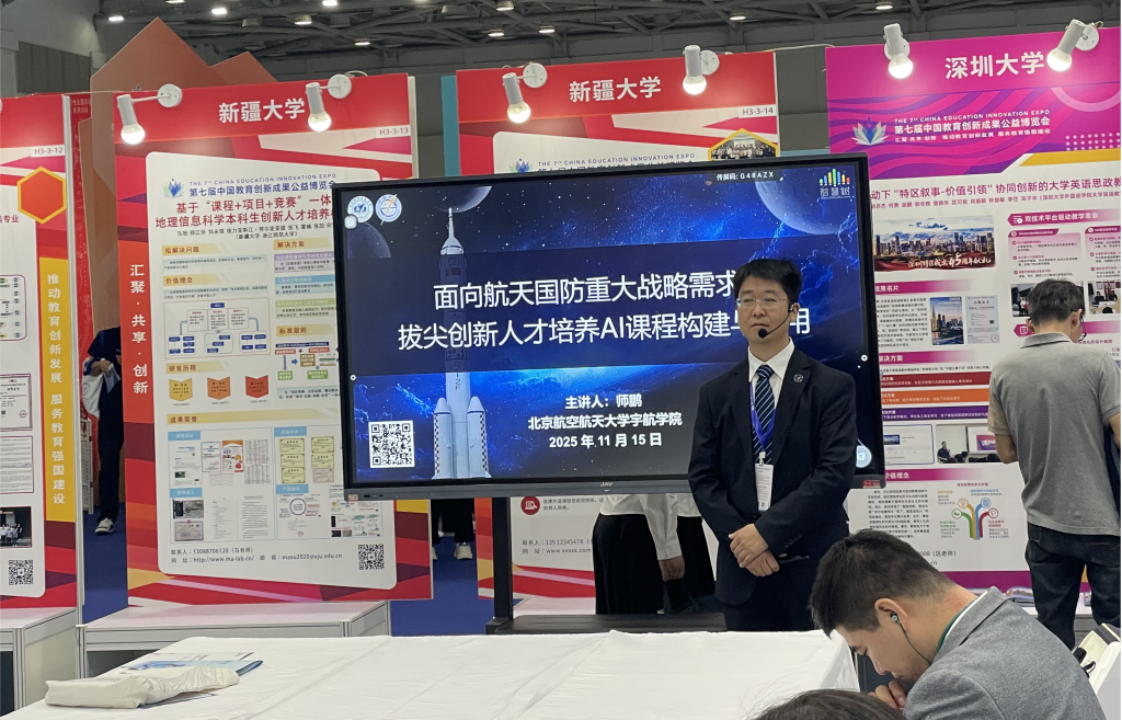 展会上,b体育必一运动副院长师鹏在成果分享工作坊进行专题汇报,重点介绍教学团队通过课程资源展示、虚拟仿真互动体验、AI教学演示等多种形式,实现了“数智驱动、人机协同”的课程教学新范式。许多参展教育机构代表表示,北航的AI课程建设成果紧扣国家航天领域发展需求,实现了前沿科技与教育教学的深度融合,为服务拔尖创新人才培养的课程建设提供了可借鉴的实践路径。