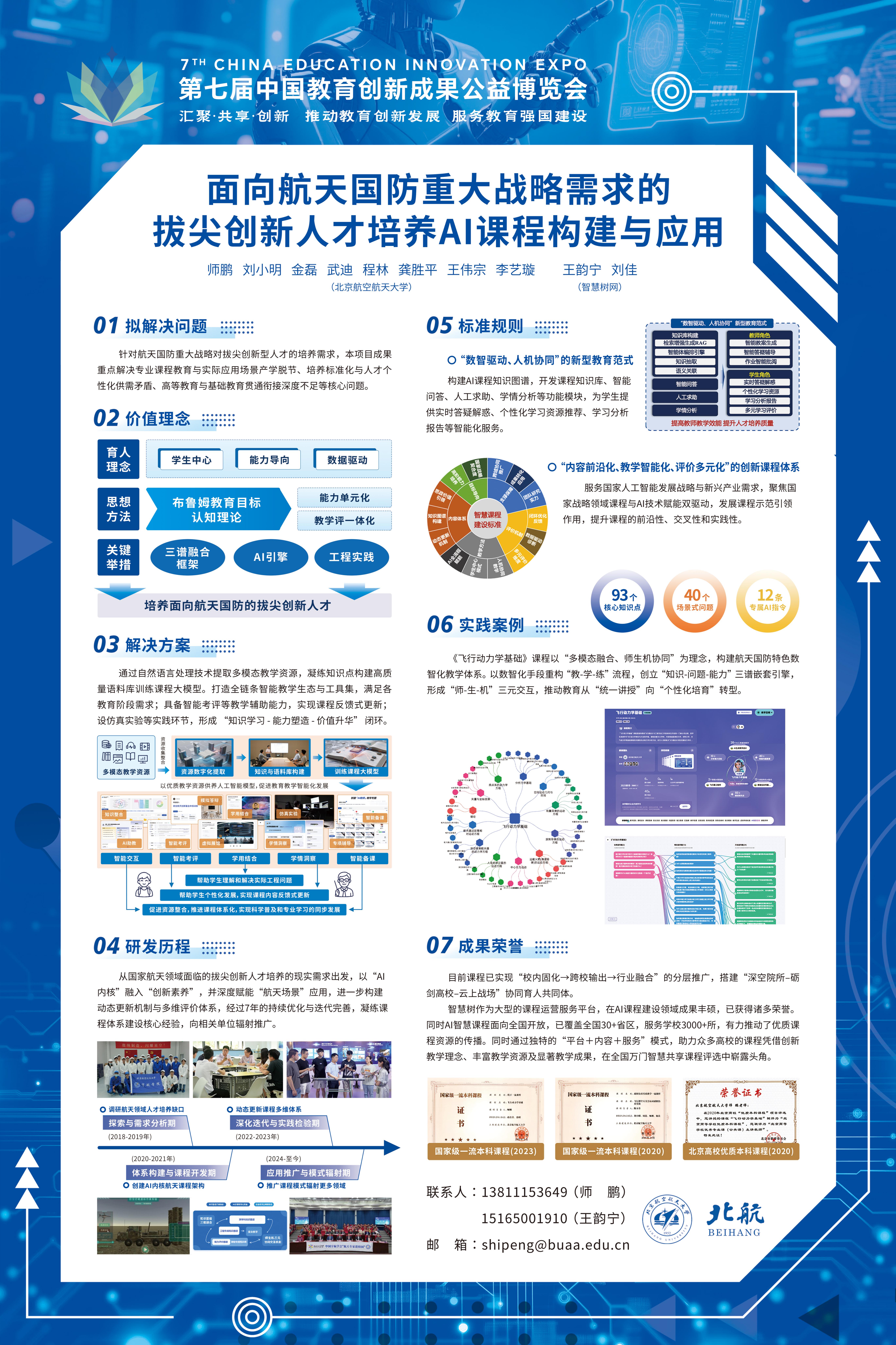 本次b体育必一运动教学团队(师鹏、刘小明、金磊、武迪、程林、龚胜平、王伟宗、李艺璇)以“面向航天国防重大战略需求的拔尖创新人才培养AI课程构建与应用”为主题参展,成果集中展示了我校在航天领域拔尖创新人才培养课程建设方面所取得的丰硕成果。其中,基于知识图谱重构的课程体系、AI智能助教“智小飞”、飞行器空天交会运动虚拟仿真实验、多种教学资源融合的新形态教材等成果,受到与会专家和行业代表的高度关注。