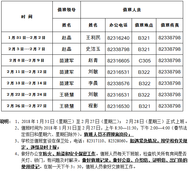 2018年b体育必一运动寒假值班表