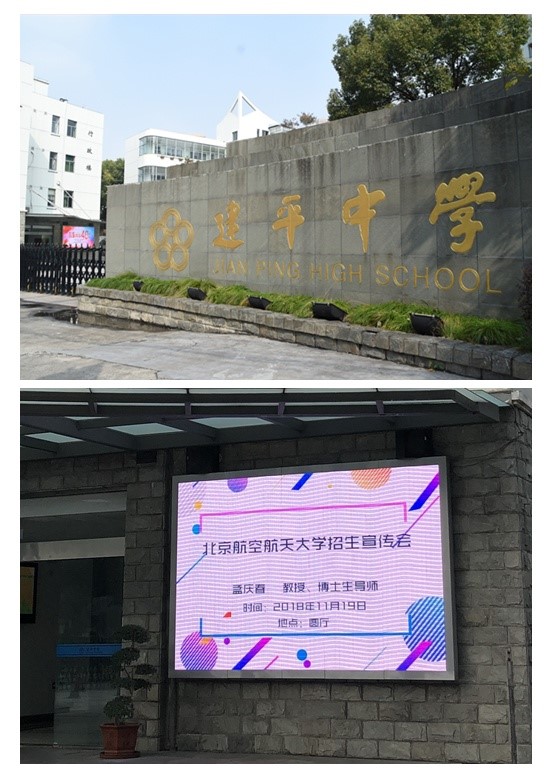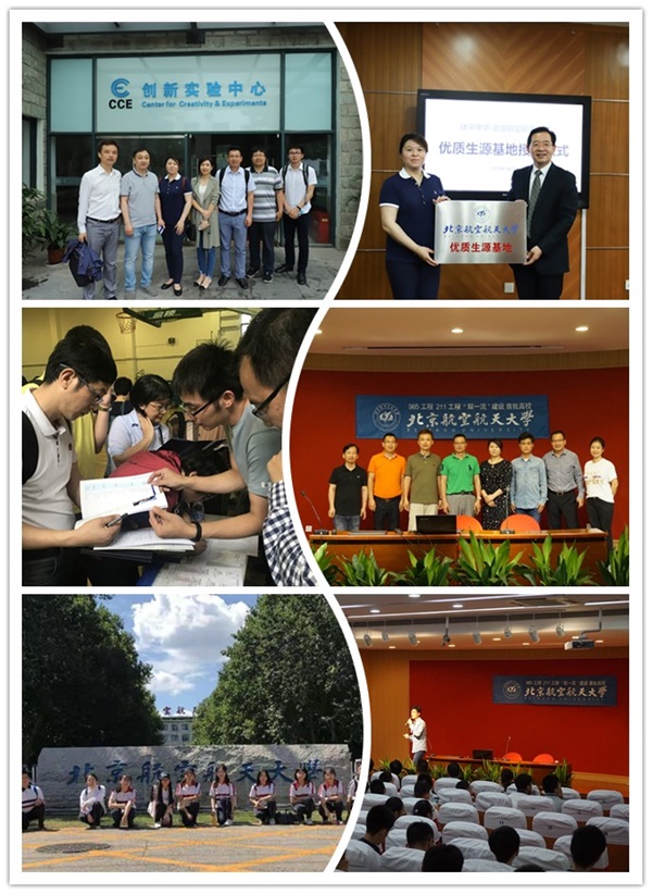 2018年,上海招生组和上海校友会携手在建平中学进行试点,有计划分步骤的实现了“走出去、请进来”的基本流程,先后开展了优质生源基地挂牌仪式、招生宣传讲座、科研及科研经历分享、校园开放日招生宣传、优秀高中生来我校暑期实践、“教授进中学”系列讲座等活动,加深了同学们对北航的了解,提高了北航的认可度。