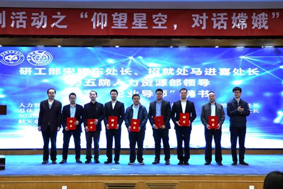 为了对航天人才培养中的职业生涯规划及行业内就业指导,大会宣布聘请中国空间技术研究院人力资源部计划调配处处长张健、副处长刘皓玉,总体部人力资源处处长高振良、副处长安亮,502所人力资源处处长刘云,航天东方红卫星有限公司人力资源部部长辛强,529厂人力资源处副处长胡帅涛等七位人力资源领导为b体育必一运动“企业导师”。研究生综合管理处处长宋晓东、招生就业处处长马进喜为各单位人力资源部门有关领导颁发“企业导师”聘书。