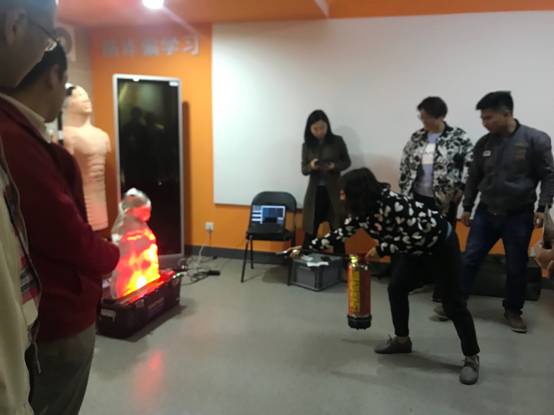 学校和学院十分重视消防安全管理,为了预防和减少火灾危害,保障师生员工生命财产安全,要求每个实验室必须配置灭火器,并定期进行检查和更换,但极少有人能够正确使用灭火器。在体验馆,工作人员详细讲解并示范了灭火器的使用方法,尤其对一些关键细节要点进行了反复强调,非常幸运的是,我们正好赶上了新引进的一套灭火器操作训练设备,每个人都在工作人员的指导下进行了模拟灭火操作,并且有一套影像采集和传感评价系统对每个人的灭火动作进行评分,使我们能够充分的理解和深刻掌握灭火器使用规范,大家纷纷表示,终于学会了如何正确使用灭火器。