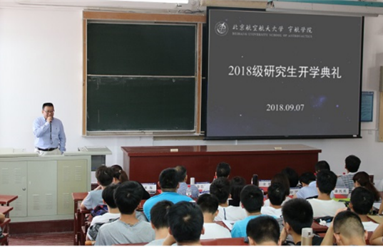 2018年9月7日下午14:00,b体育必一运动2018级研究生开学典礼在(四)323教室成功举行。本次典礼由b体育必一运动研究生指导主任王晓慧主持,院长杨立军、党委书记金蓉、研究生教学副院长姜志国、科研副院长董云峰、航天飞行器技术系主任黄海、航天飞行器技术系支部书记陈珅艳、航天制导导航与控制系支部书记王可东、宇航推进系主任徐旭、图像处理中心支部书记谢凤英、国家青年项目入选者王伟宗、研究生教学秘书许坤梅、学院研究生辅导员、院研会主席团成员以及2018级全体研究生一同出席了典礼。
