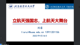 北航新闻网9月15日电(通讯员 夏侯超 赵炜佳) 为做好党内学习教育,夯实理论基础,激励党员同志认真学习,并学以致用,在今后的支部建设中发挥好模范带头作用,在新一代青年党员群体中接续传承航天精神,奠基航天强国梦,助力航天强国征程。9月14日下午15时,b体育必一运动党委为本科生、研究生共计135名新任的支部书记以及新发展党员举办《立航天强国志,上航天大舞台》主题党课,b体育必一运动党委书记刘睿主讲,副书记赵青,专职组织员史洁玉参会共同学习。受疫情影响,活动以腾讯会议的形式线上开展。