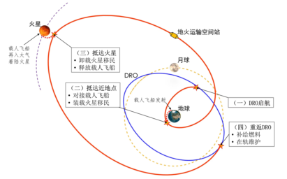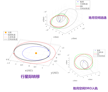 本届甲组赛题以可重复使用地火运输空间站支持火星移民的轨道设计为背景,参赛队需要在严苛的约束下使用不超过50艘空间站在20年内运载尽可能多的移民到达火星,需规划出空间站由月球远距离逆行轨道(Lunar Distant Retrograde Orbit,DRO)启航、抵达地球轨道装载移民、地火转移、火地转移以及重返DRO补给的整个飞行流程,涉及行星际飞行、地月空间限制性四体问题等复杂深空轨道动力学问题,是一个强非线性和复杂多约束的任务规划与轨道优化问题。