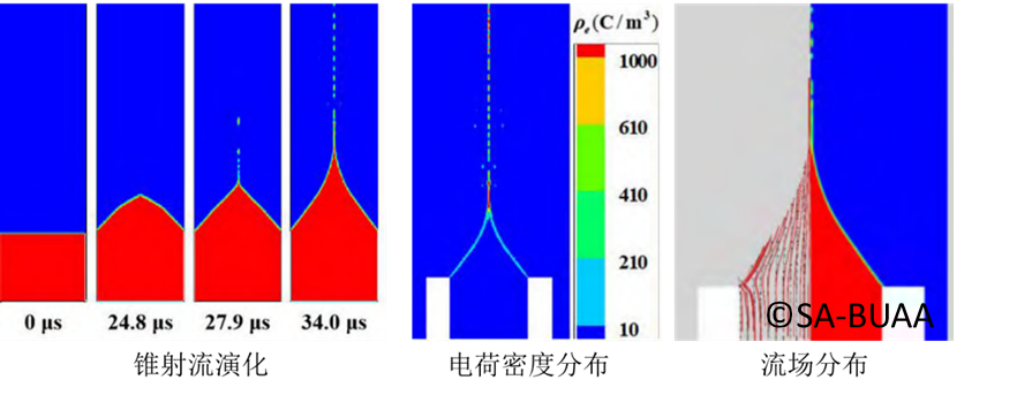 电流体力学模拟获得的离子液体锥射流形成、演化和流场分布