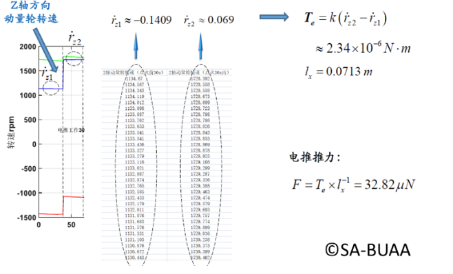 自2022年5月17日首次点火以来,ILT-50离子液体电喷雾推进系统进行了多组持续的点火工作及推力在轨功能试验。遥测数据表明,卫星动量轮转速发生了明显的变化。通过对比点火前后卫星动量轮转速变化数据,得到离子液体电喷雾推力器在-5至-10℃条件下的推力为32.8μN,这与2022年10月18日和2023年2月25日两轮次点火的数据和项目团队前期在地面使用微推力架测得的推力数据一致。这也是离子液体电喷雾推进系统首次公开报道的在轨推力数据。