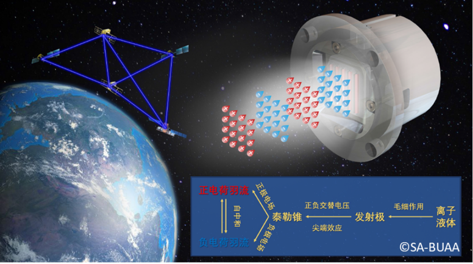 亚太空间合作组织大学生小卫星星座和搭载的离子液体电喷雾推进系统示意图