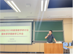 学院党委书记刘睿做了总结讲话,要求全体教师:一要汲取本次教学工作会议中的先进经验,明确发展方向; 二要强化底线意识,对于教育教学工作中的风险点做到早预防、早发现、早解决;三要在保持攻坚克难作风的基础上,发扬久久为功的精神,深入思考如何将教学工作长期规划、稳扎稳打、做细做实。
