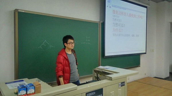 宣讲过程中,高琨鹏详细介绍了找工作的基本过程,包括准备简历,投递简历,笔试,复试等过程,还详细介绍了系统内外专业的区别以及相应的努力方向,建议要多向学长学姐吸取经验,并叮嘱我们一定要明确自己的梦想所在,找准目标,马上准备。王军杰则从找工作的技巧方面做了比较详细的介绍,提醒现在要立足基础,忙碌起来,做好自己的本职工作,适度锻炼自己的口才,多做项目,提高自己的技术能力。