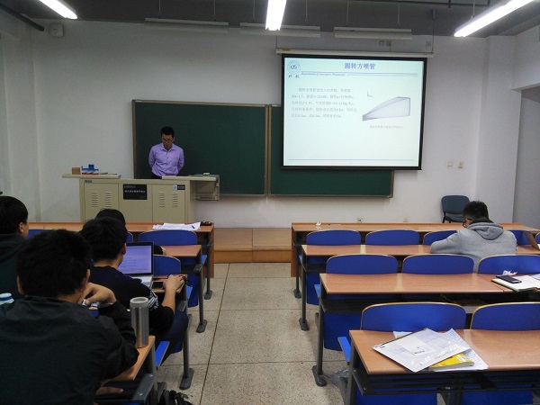 最后一位宣讲人是来自b体育必一运动的王洪信,他的宣讲题目是“入口气流非均匀性对超声速喷管性能的影响”。王洪信解释了超声速喷管由于自身外形非对称的特点以及“边混合便燃烧”的过程,导致的喷管入口前气流非均匀性明显的特性,并以此作为展开,研究了这种非均匀性对超声速喷管性能的影响。通过仿真软件的计算,得出了静温、静压等非均匀分布的特征以及推力的变化,令大家印象深刻。