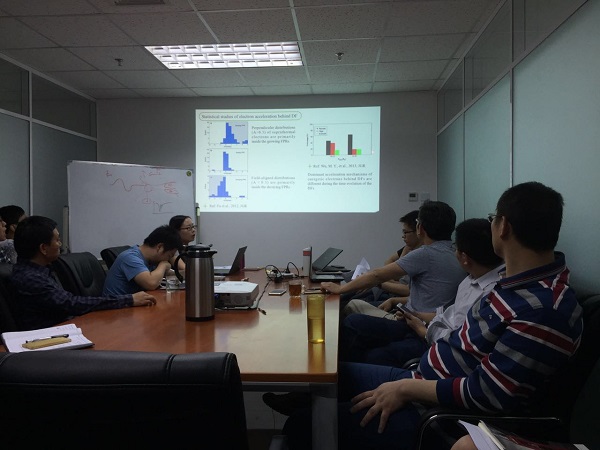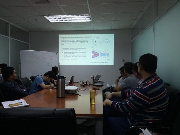 徐印博士认真细致的讲述了自己的工作和成果,从偶极化锋面和磁重联的定义讲起,介绍了至今为止前人的研究工作,并详细地讲述了研究过程中的使用统计方法。