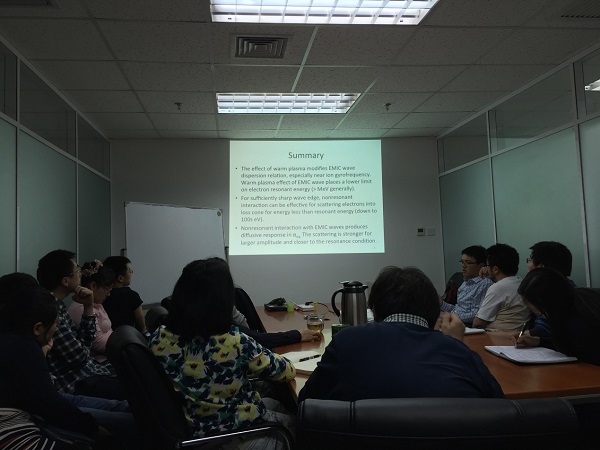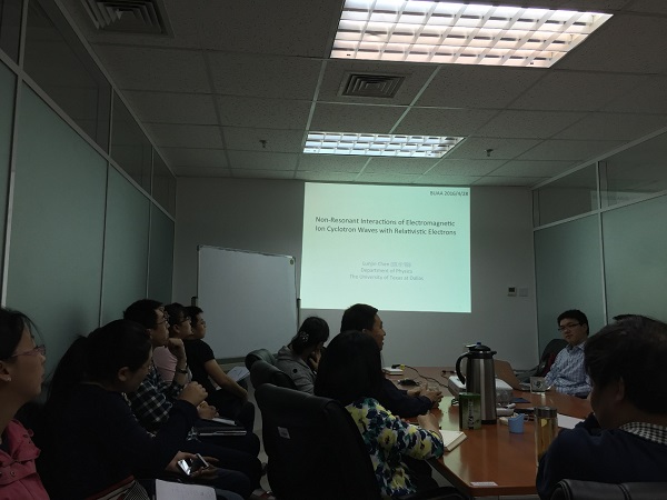 2016年4月28日,b体育必一运动空间物理系邀请到美国德克萨斯大学达拉斯分校的陈伦锦教授做报告。陈伦锦博士分别于2004年和2007年在中国科技大学取得了学士、硕士学位,于2011年在美国洛杉矶加利福尼亚大学取得了工学博士学位。报告题目为: Non-Resonant Interactions of Electromagnetic Ion Cyclotron Waves with Relativistic Electrons。