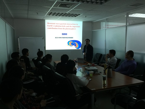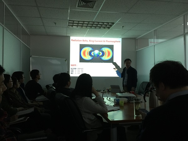 此次报告的题目为:Resonant wave-particle interactions in Earth’s radiation belts and the important contribution from the plasmasphere。报告内容分为三大部分:共振波粒相互作用的介绍,由等离子体波引起的辐射带电子的加速和损失,等离子体层的重要贡献。共振波粒相互作用作为一种基本的物理过程,在地球磁层粒子动力学过程中起着重要作用。这些空间等离子体波,一方面能与辐射带能量电子(100's eV - ~10 MeV)发生共振作用,对它们进行加速生成相对论“杀手”电子,另一方面也能导致它们损失沉降到电离层与下层大气,明显影响后者的化学特性与电特性。作为地球内磁层中包含低能量、冷等离子体的关键区域,等离子体层冷粒子成分主要源于电离层粒子上行,但通过多个方面对辐射带波粒作用过程与动力学效果产生重要影响,包括:影响空间等离子体波的传播,改变波粒共振条件,调整波动导致的粒子动态变化,影响辐射带分层结构等等。