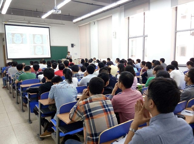方若谷老师主要的研究领域为医学图像处理,而她的这次报告也紧密围绕这一点展开。报告会的题目是“Exploiting the Medical Data Structure for Biomedical Imaging Enhancement”,这一技术的发展在全世界范围内也广受瞩目。以往的医学成像无论在清晰度还是安全性上,与人们的预期都还有较大差距,这一科学难关等待着人们去攻克。方老师着重介绍了“SMILE”方法(Smart Medical Information Learing Evaluation),突出体现了其特点与优越性,给大家很大的启发。