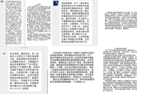 节目结束后,大家纷纷书写感想。耿铖、李重华、张靖奕同志写到了使命感;张笑妍、张娇蕊同志写到了航天精神、航天梦想;何钰琛同志写到了实干精神。这不仅是个别同志的感触,更是每一个人的心声。