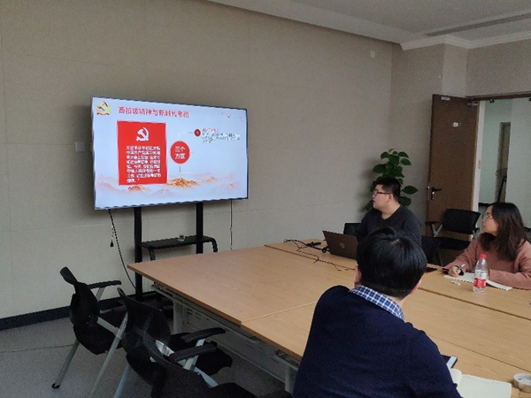首先,刘腾宇同志总结了2019年度党建工程项目的学习成果,并从四个方面为同学门讲解了西柏坡精神的内涵实质和时代价值。谈到西柏坡内涵实质时,刘腾宇同志指出,“两个敢于”是西柏坡精神的重要内涵,而“两个善于”则是西柏坡精神的重要特征。汇报的最后,刘腾宇同志总结道,作为新时代的青年,我们要始终自觉坚持党的领导,在日常的学习和科研生活中始终保持艰苦奋斗的精神,要努力继承和发扬西柏坡精神。