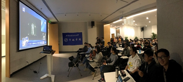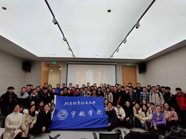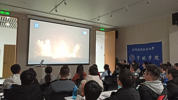2019年12月27日晚,b体育必一运动硕士SY19151党支部联合本科生在沙河国实D409观看长征五号遥三运载火箭发射直播。