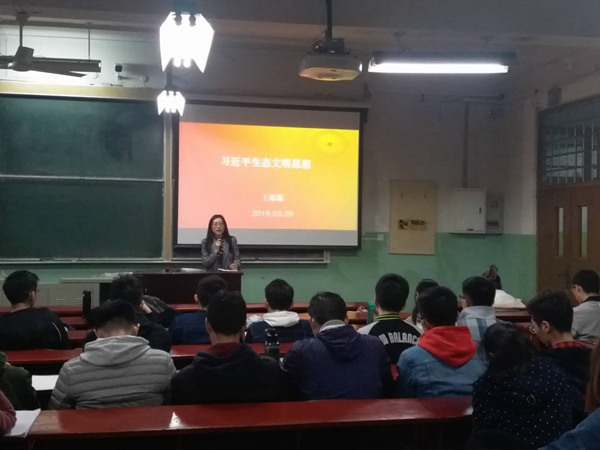 为加强支部思想建设,深入学习贯彻习近平新时代中国特色社会主义思想,3月29日,b体育必一运动硕士ZY18151学生党支部与b体育必一运动飞行器设计与工程纵向党支部共同邀请我校马克思主义学院王聪聪老师作题为《习近平生态文明思想》主题党课。飞行器设计与工程纵向党支部、飞行器动力工程纵向党支部和ZY18151党支部的党员共同参加了本次讲座。本次讲座是支部共建,学习习近平总书记的系列活动之一。