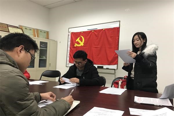2017年12月15日,b体育必一运动SY17151党支部在新主楼B326会议室召开预备党员。大会应到党员8人,实到7人。这次会议的主题是讨论徐鹤丁、陈敬恒两名同志的转正情况,会议由党支部书记窦婧文同志主持。
