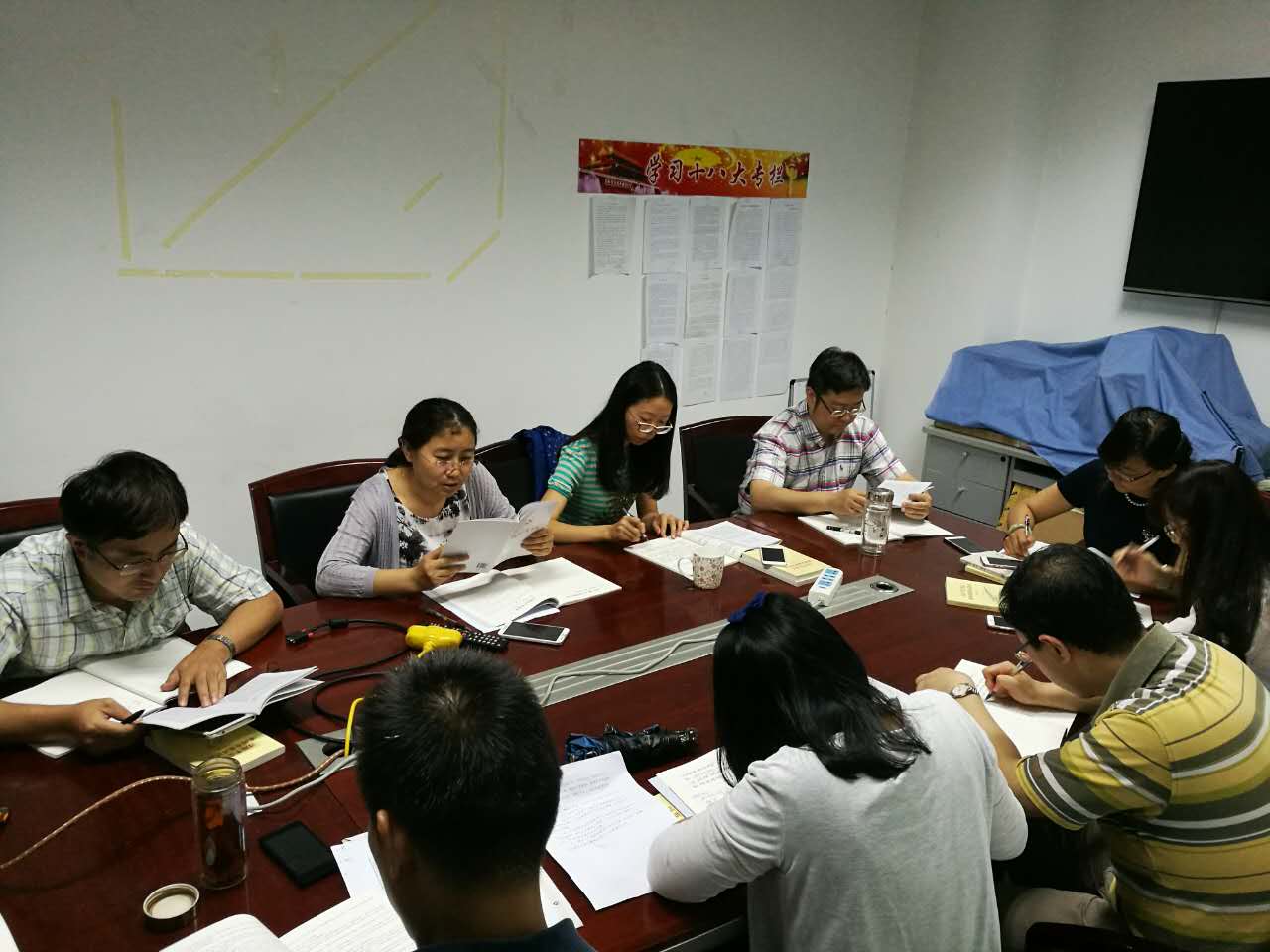 2016年6月28日上午10点30分,图像处理中心党支部党章集体学习活动在新主楼D410举行。图像处理中心党支部10名在校教工党员参加了本次党章集中学习。活动由图像处理中心党支部书记谢凤英教授主持。谢凤英、孟偲、张浩鹏三位同志分别诵读了党章中总纲、党员权利与义务、党的纪律等与本支部实际密切相关的重点章节,全体与会同志重温了党的性质、指导思想、基本路线、四项基本原则等总领党和国家建设和发展的政治纲领,深入理解了党员应当履行的八项义务以及享有的八项权利,明确了党的组织纪律。本次党章集体学习活动是图像处理中心党支部结合本单位实际,深入开展“两学一做”学习教育系列活动的重要内容,进一步坚定了党员的理想信念,增强了党员意识和组织纪律观念,为充分发挥党员的模范作用、做服务于学校世界一流大学建设目标的合格党员奠定了基础。