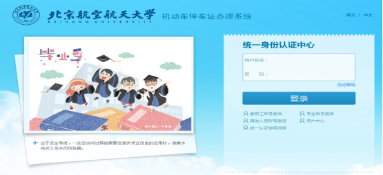 2、 系统跳转至“统一身份认证中心”页面,如下图