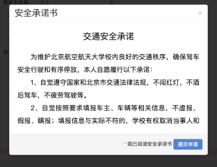 d.点击“提交申请”,出现“安全承诺书”界面。